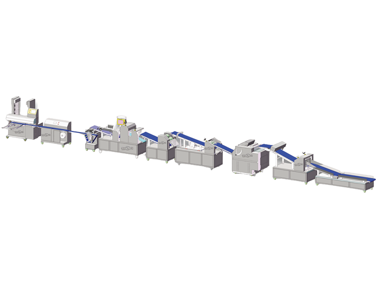 Dough conveying--Dough pressing and dividing-- Continuous and automatic dough pressing-- Automatic convey ofdough sheet--Stuffed bun and steamed bun forming--Put paper on tray automatically--Tray arranging automaticallyThe whole production line use of multiple advanced technologies including photoelectric sensor, electro-magnetic in-duction, servo positioning system, human-computer interface, microcomputer programming technology. Higher degree